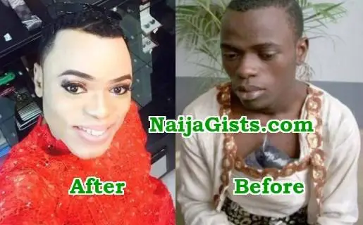 While this is the appearance of Bobrisky before he began using bleaching creams and other beauty products. You can see how he appears in this photo.